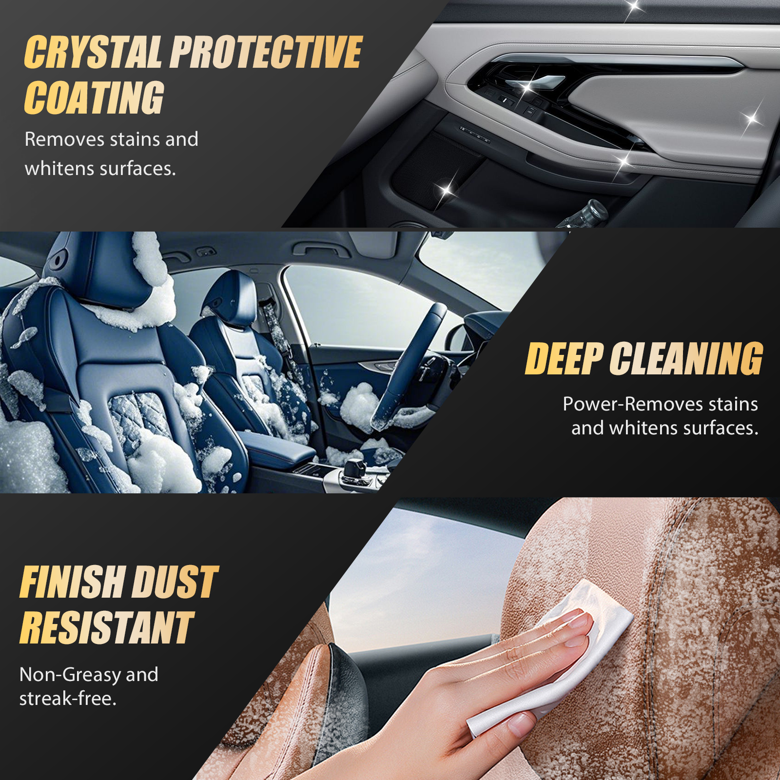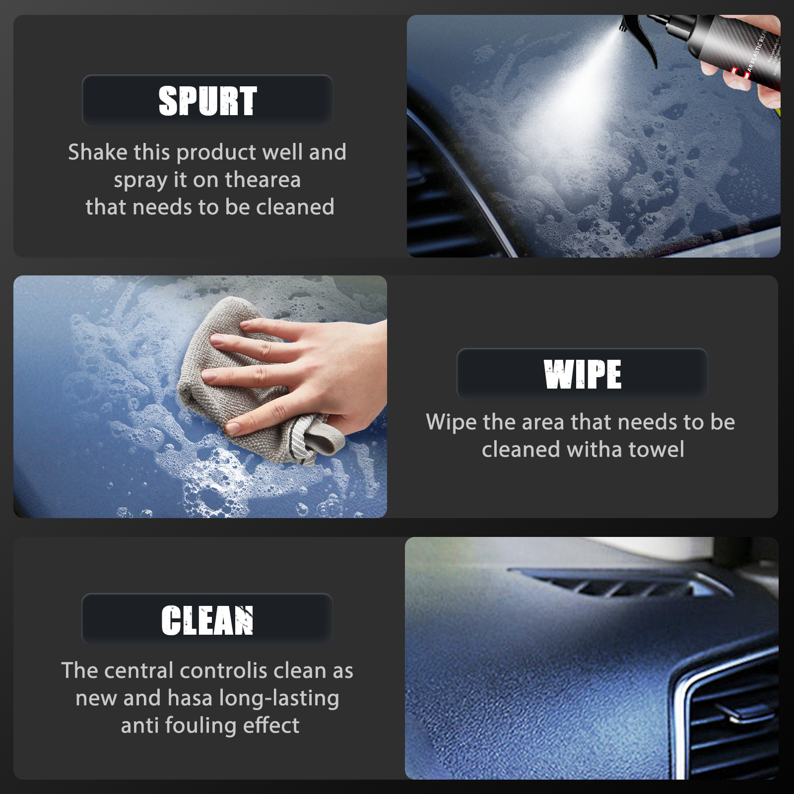 NICHT FETTENDE UND STAUBABWEISENDE OBERFLÄCHE: Im Gegensatz zu einigen Reinigern, die fettige Rückstände hinterlassen, bietet dieser Innenraumreiniger für das Auto ein sauberes, nicht fettendes Finish. Die Oberfläche bleibt glatt und leicht zu berühren, ohne Staub oder Schmutz anzuziehen. Das bedeutet, dass der Innenraum Ihres Autos länger sauber bleibt, die Häufigkeit der Reinigung reduziert wird und eine frische, staubfreie Umgebung erhalten bleibt.