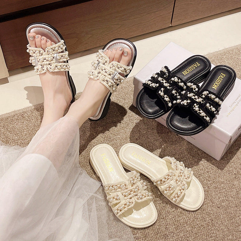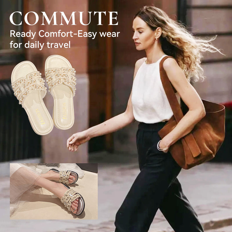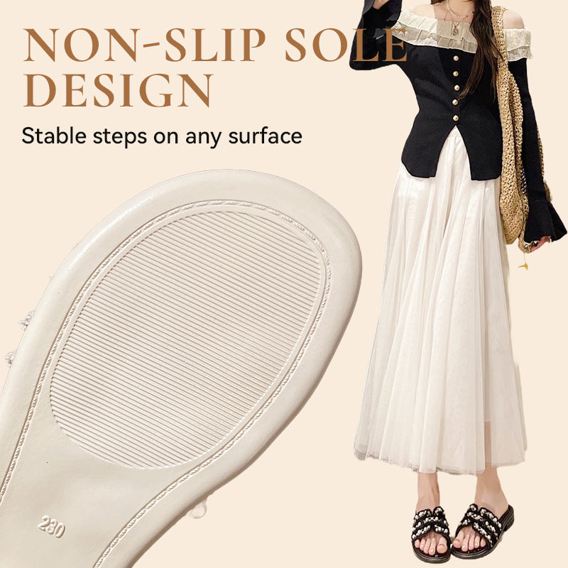 Flache Pantoletten im französischen Stil mit gefälschten Perlen verziert