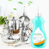 Unsere alkalische Formel zersetzt selbst hartnäckige schwarze Verschmutzungen am Topfboden vollständig, während sie alle Arten von Kochgeschirr schont - Ihre Töpfe glänzen wie neu.