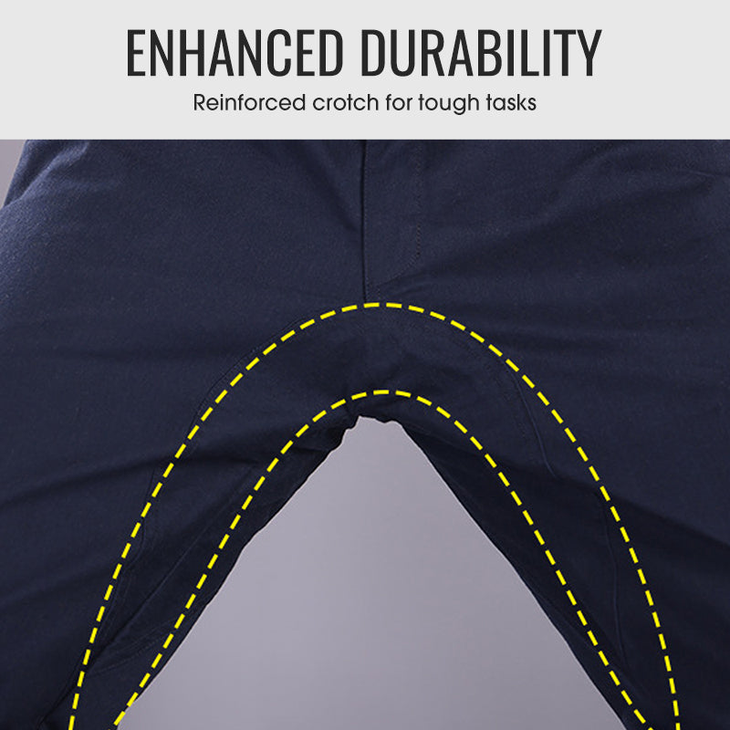 VERBESSERTER, DOPPELLAGIG VERSTÄRKTER SCHRITT: Das doppellagige, verstärkte Schrittdesign sorgt für zusätzliche Strapazierfähigkeit, insbesondere bei schweren Arbeiten. Diese Verbesserung erhöht die Reiß- und Abriebfestigkeit, wodurch sich die Hose perfekt zum Knien, Strecken und für wiederholte Bewegungen eignet.